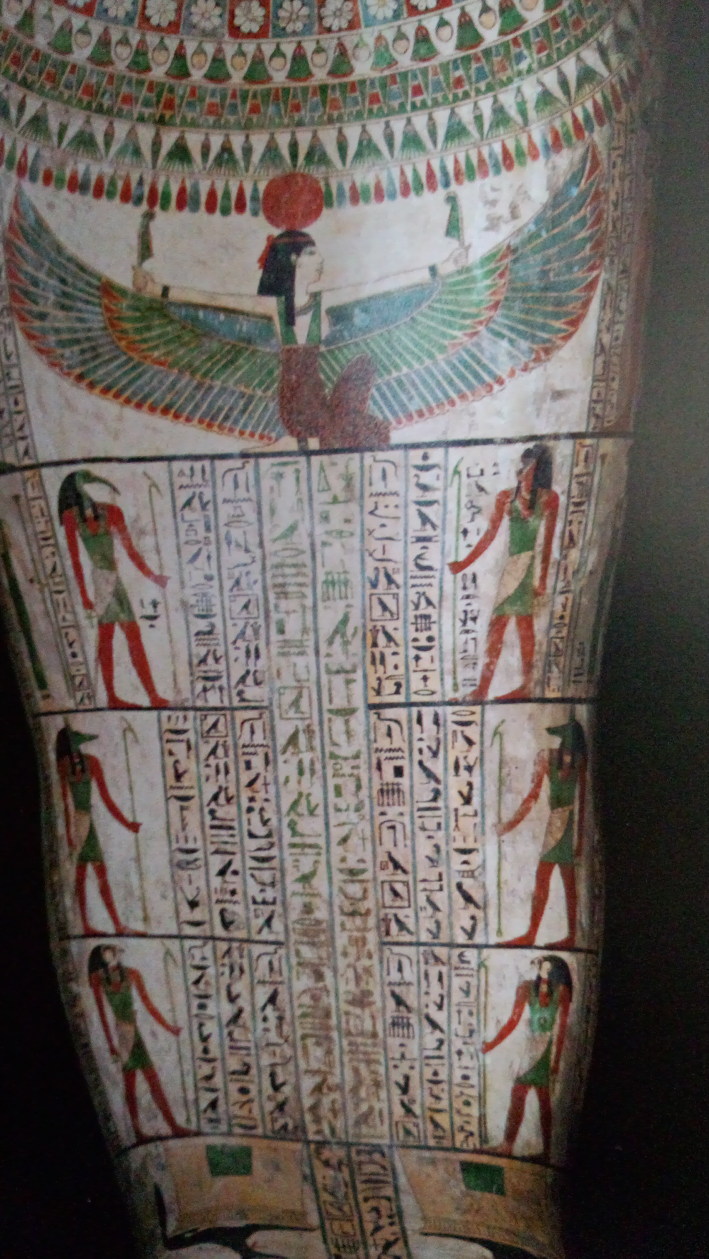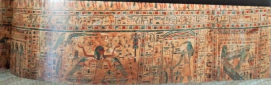 このひとの棺はミイラ覆いも、すごく綺麗で見がいがありましたね。絵も様々なものがたくさん、字もたくさん書いてあって、内側も側面も、全部が見どころ。すごいですね。