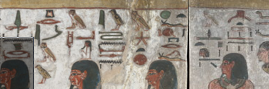 Awt=sn m Htp tp tA xft ra pr=f m dwAt彼らの贈り物はラー神の前で彼が冥界を出てくるときに無事である。iw wdn=sn m aHa xr imw彼らに捧げものをする者は《誰でも》、木々の下に立つ者(神)となる。●アムドゥアト(右から。画像はKV34