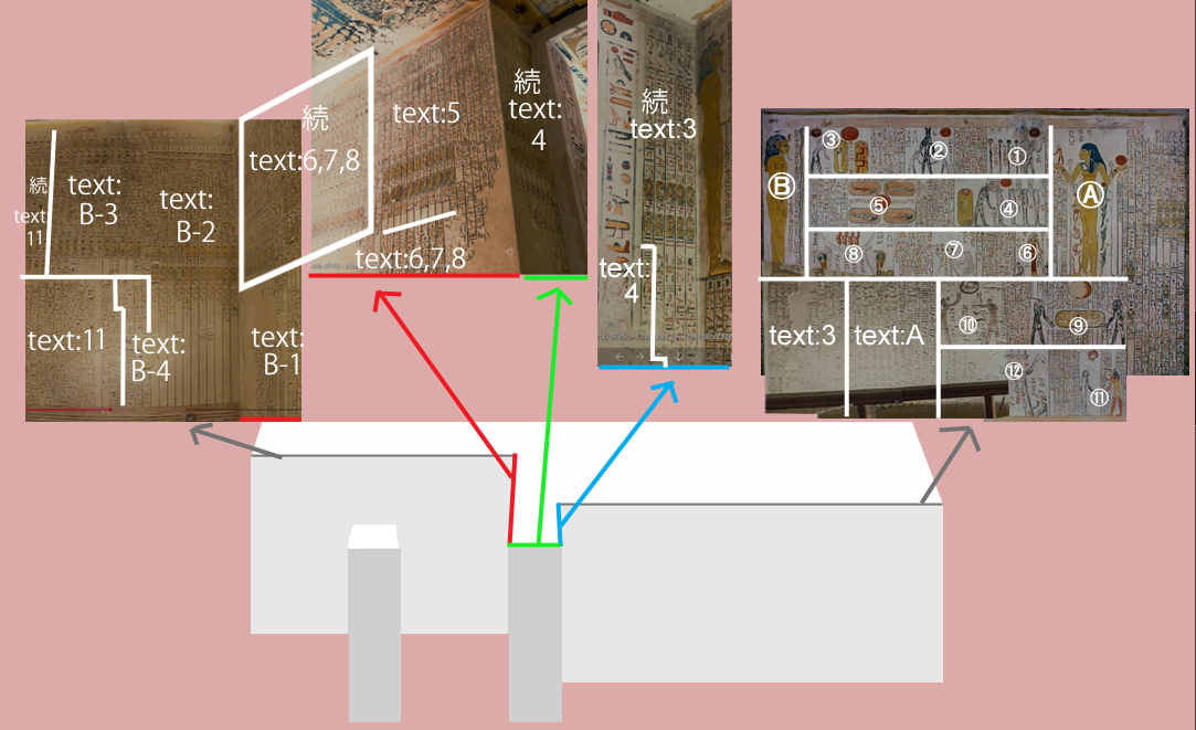 R9のもの。 今は剥落しているのか、 写真は見つけられなかった。 | R6同じシーン。 該当テキストは羊頭の神の前の二行にぜんぶある。 つまりprt in~の一行全部ここのだった! |