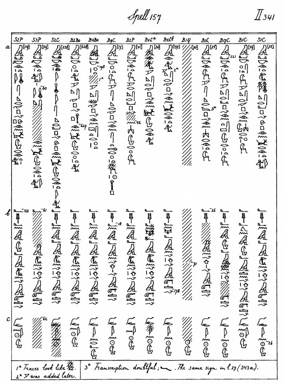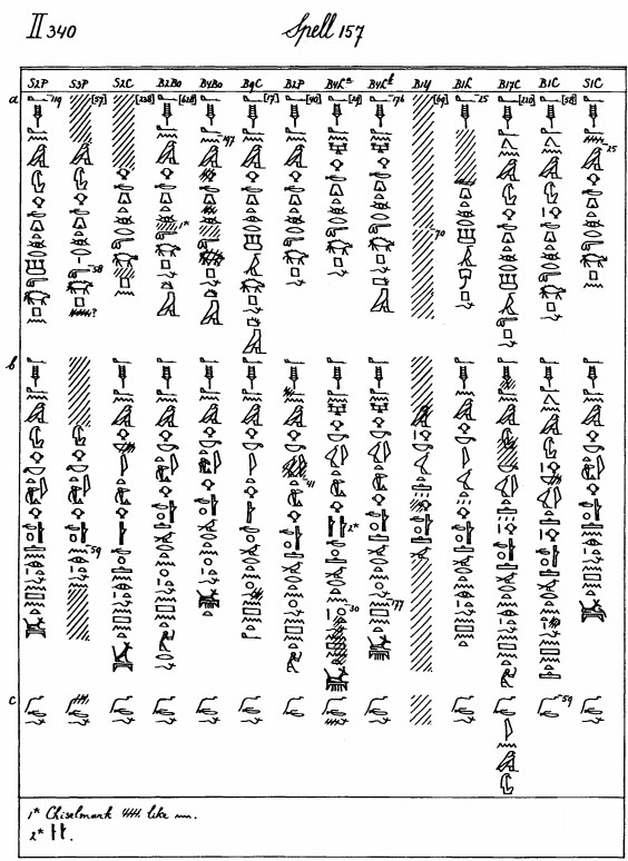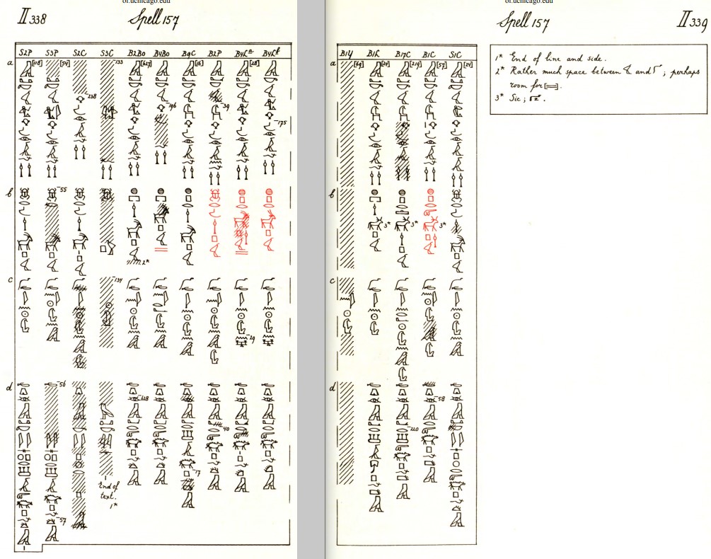 「ウジャトの眼を構成するものを与えるために、オリックスを焼き、殺す。月よやって来い、あなたが空を自由に横切れるように。そうすればその動きは無傷で健全であるだろう」(←おそらくウジャトが完全に無傷な状態であるためには、オリックスは邪魔なので、焼き殺すということ)